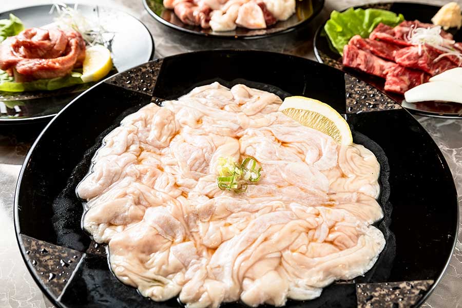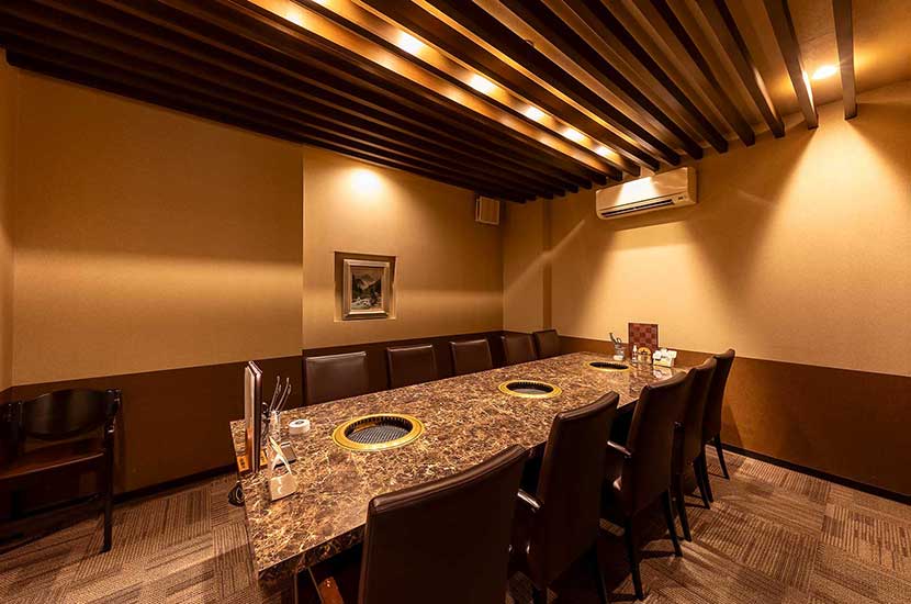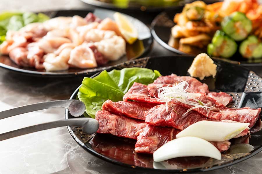 大仁門 東雲店(しののめてん)は本店から徒歩3分の距離。席のほとんどは仕切りのある半個室タイプになっており、プライベートなお食事シーンに最適。メニューは、色内本店と同じメニュー構成でランチ営業も実施。大仁門の代名詞である「質と鮮度」にこだわったお肉や豊富なサイドメニューをゆったり空間でご堪能ください。